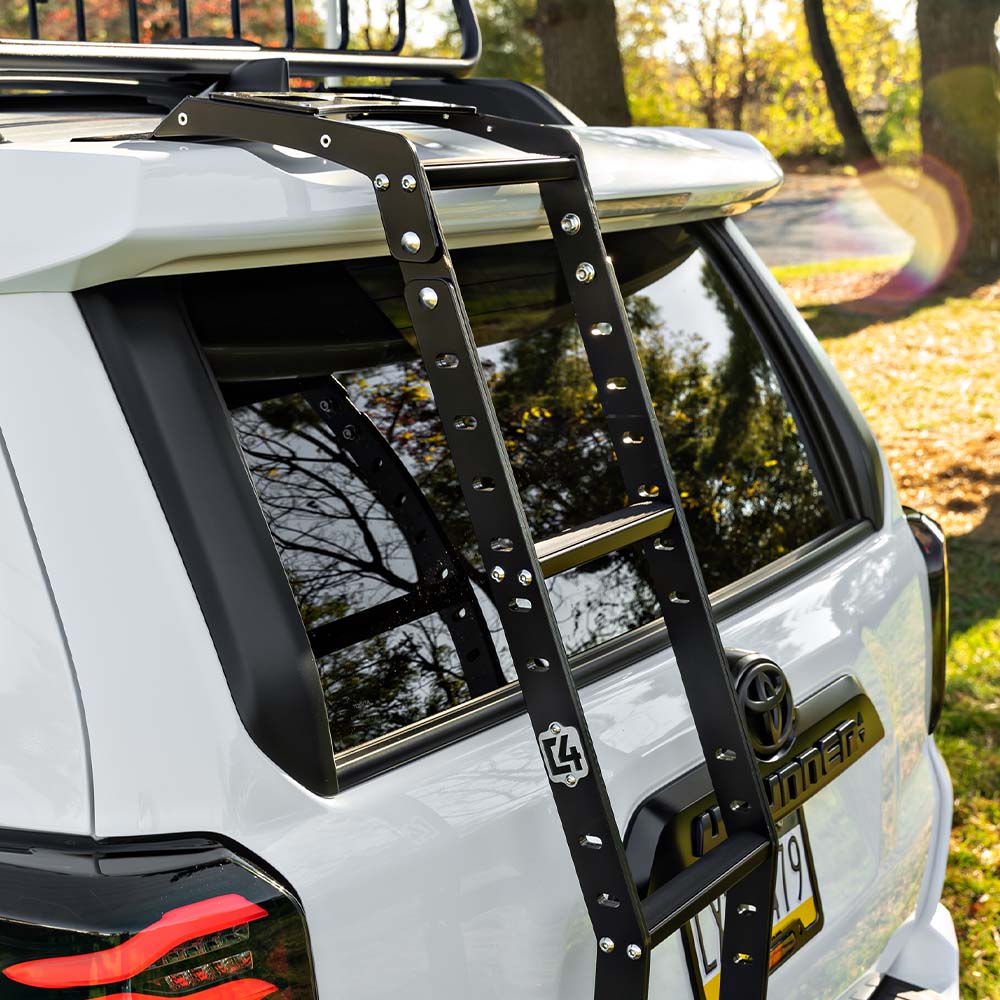 The Summit Hatch Ladder is a perfect ladder for anyone looking to get easier access to the roof of their 4Runner, no more standing on your door sills or tires trying to reach items on your roof rack. The best part is the Summit Hatch Ladder is compatible with the following roof racks;Â Sherpa Equipment Co., Frontrunner Slimline, Prinsu Design, SSO, TMT, Echotechne, Toyota TRD Pro, and ARB.
